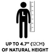 Un discreto sistema de elevación interna te proporciona entre 5 y 12 cm (2 a 4,7 pulgadas ) de altura natural, sin que nadie lo sepa.